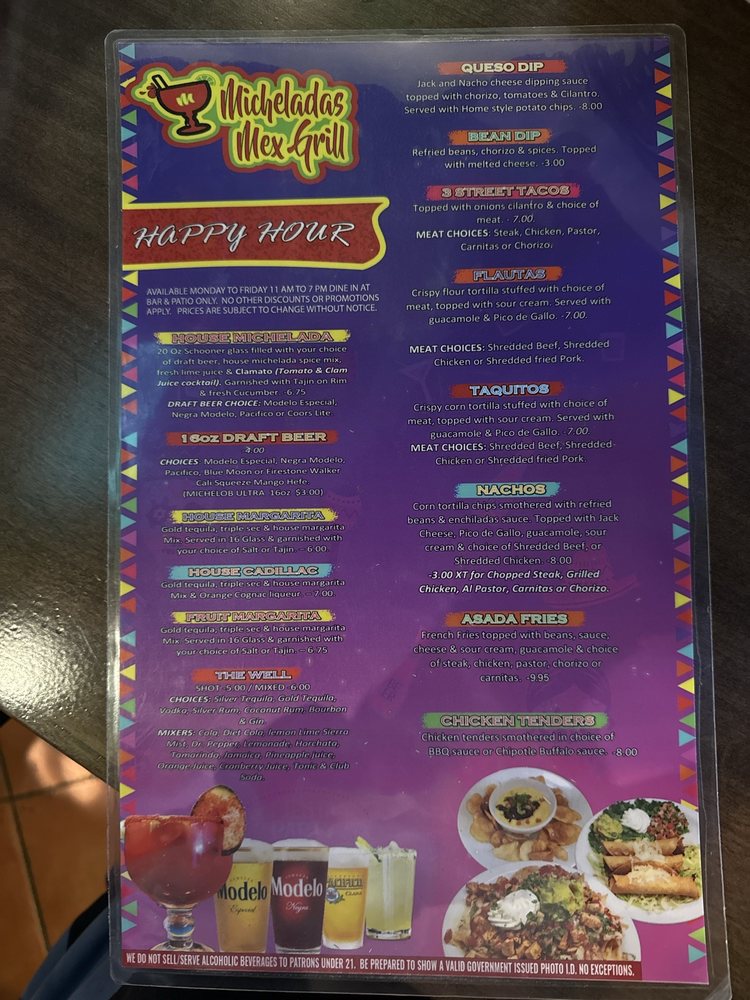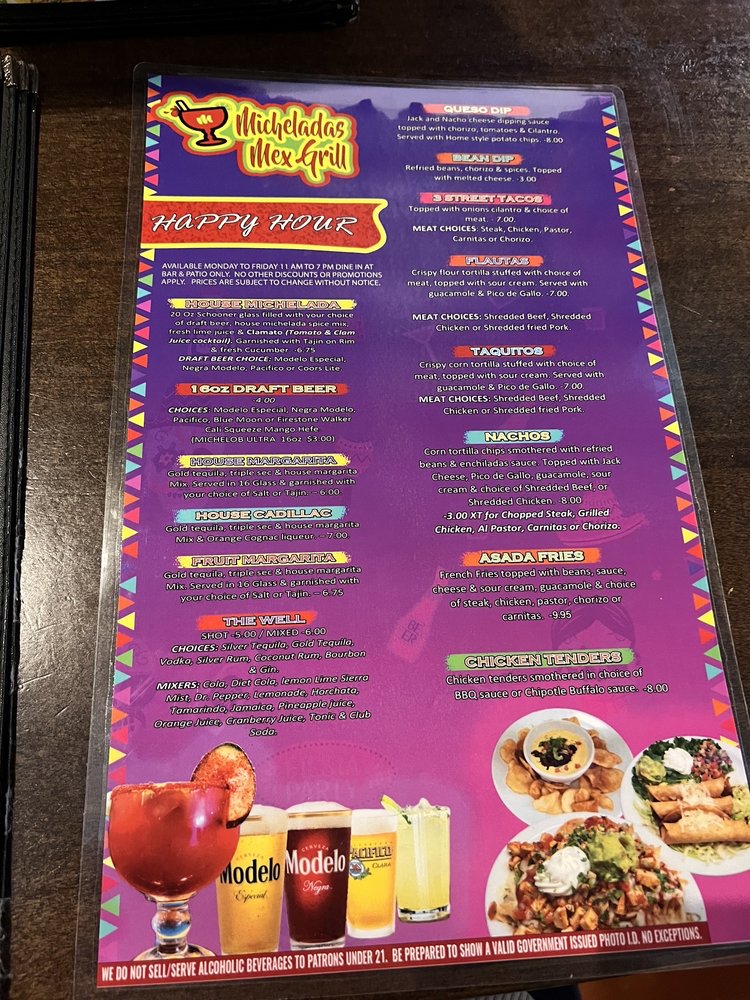Micheladas Mex Grill Menu